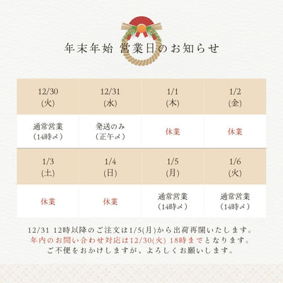 発送:12/31 正午以降のご注文は1/5(月)から再開いたします。